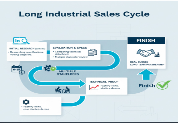 Industrial sales cycles take months, not days. Your LinkedIn strategy needs to reflect this reality. Focus on building relationships and staying visible throughout long evaluation periods, not chasing quick sales.
