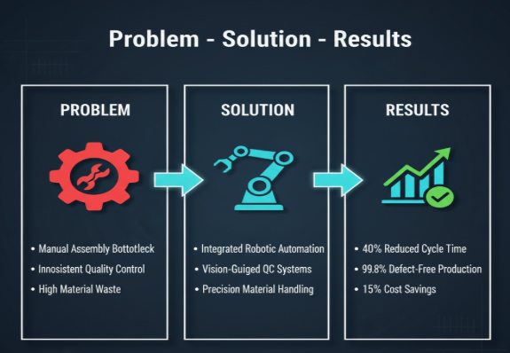 • Problem-solution case studies connect strongly. Use this format: “Customer had [specific technical problem]. Here’s how we solved it with [specific solution]. Results: [measurable outcomes].” Keep it concise—3 to 4 paragraphs maximum. Specifics like “Reduced cycle time by 40% while maintaining ±0.001″ tolerances”are much more compelling than “delivered exceptional results.”